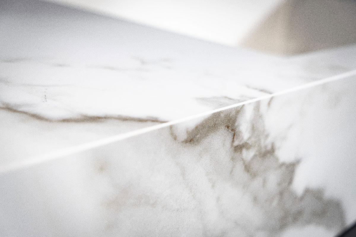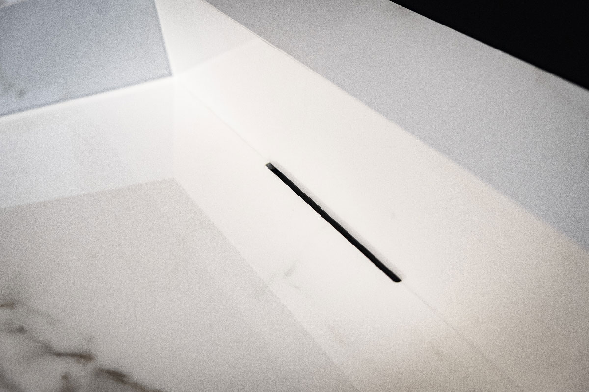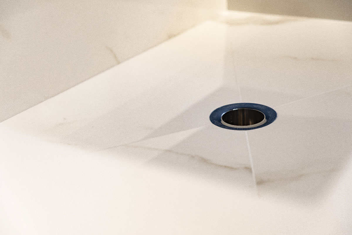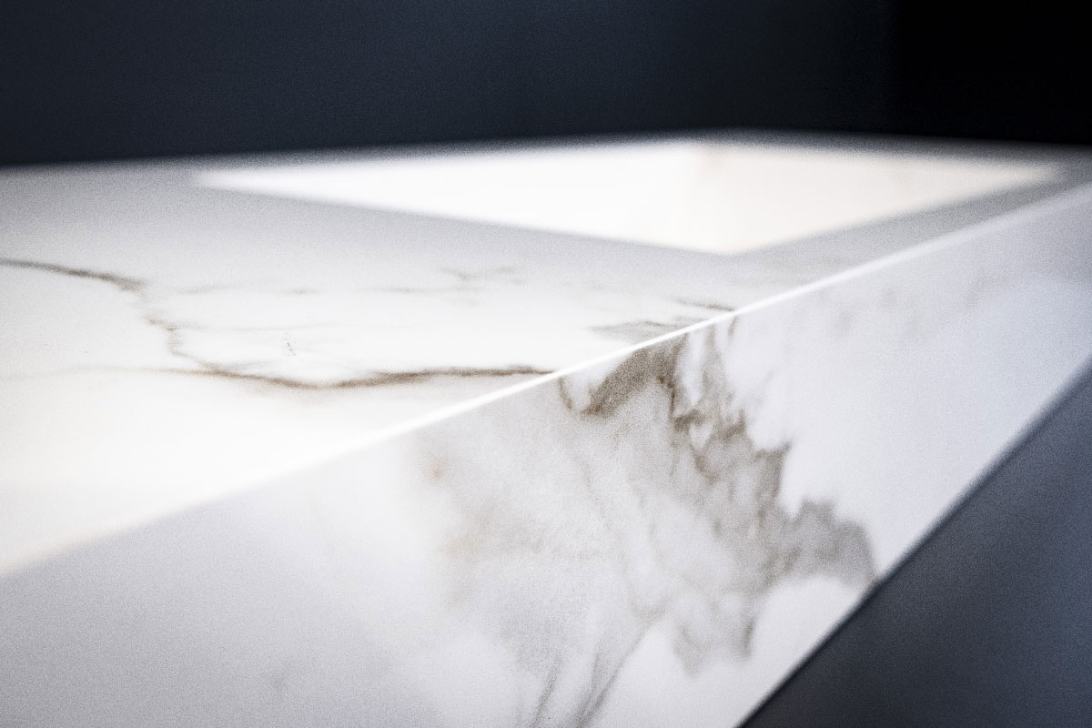 Sono realizzabili in 14 diversi marmi, disponibili in grandi lastre in gres porcellanato, che permettono di coordinare la posa a muro e a pavimento con il lavabo e il piano d’appoggio.